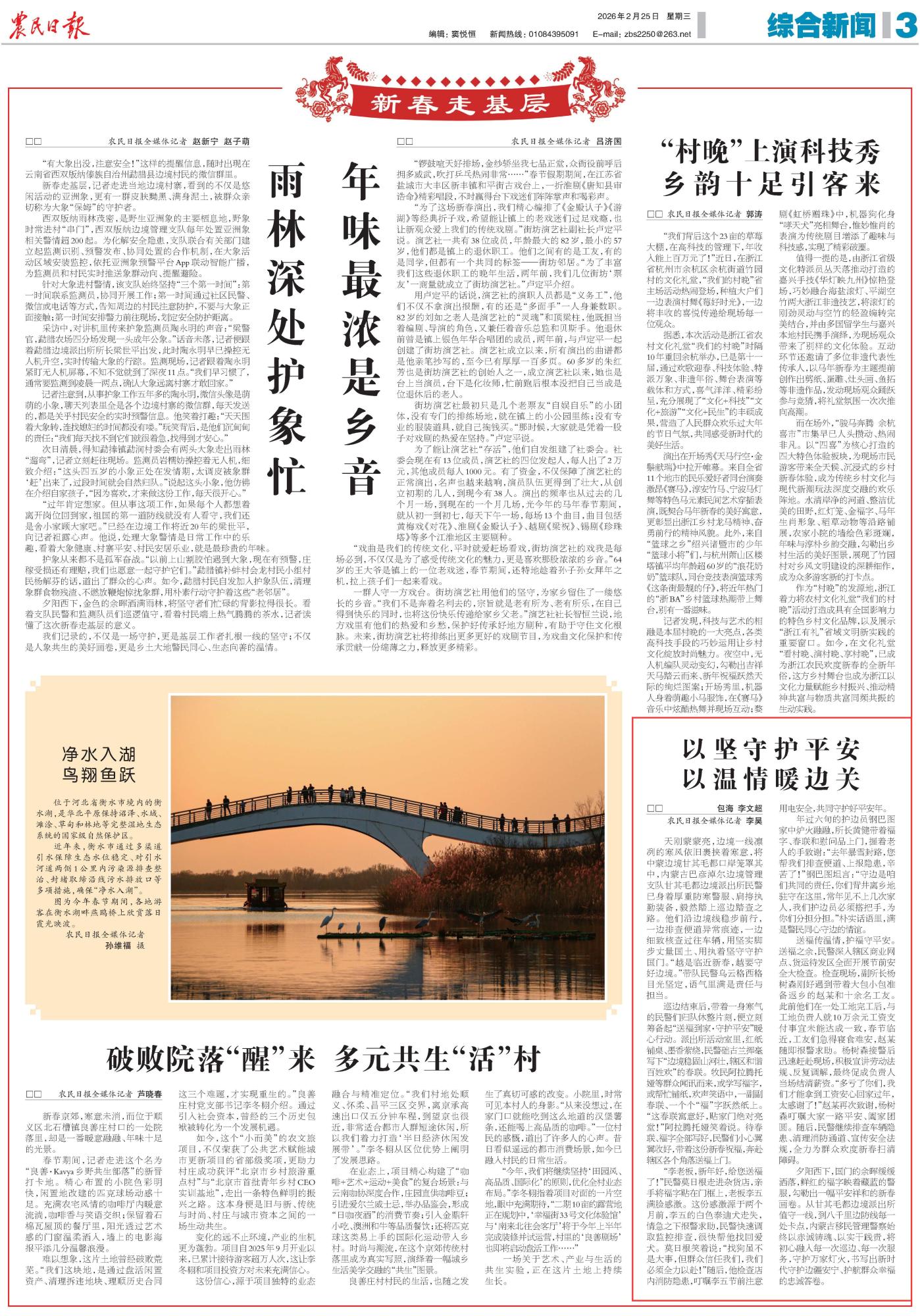 “李老板,新年好,給您送福了!”民警莫日根走進雜貨店,親手將福字貼在門框上,老板李五滿臉感激。這份感激源于兩個月前,李五的白色泰迪犬走失,情急之下報警求助,民警快速調(diào)取監(jiān)控排查,很快幫他找回愛犬。莫日根笑著說:“找狗雖不是大事,但群眾信任我們,我們必須全力以赴!”隨后,他檢查店內(nèi)消防隱患,叮囑李五節(jié)前注意用電安全,共同守護好平安年。