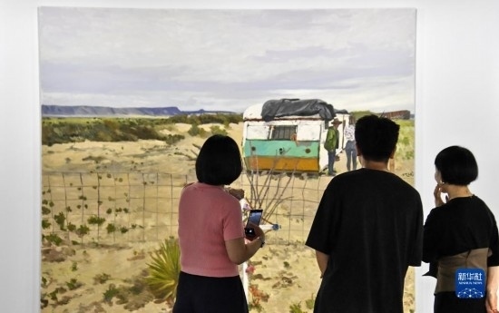 5月28日,市民在國家對外文化貿(mào)易基地(北京)的意大利MDC畫廊觀看展出的油畫作品。