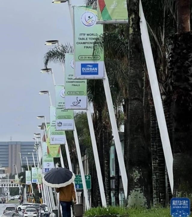 德班街頭燈桿掛起本次世乒賽宣傳海報。