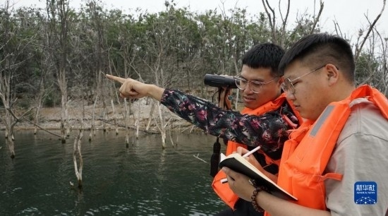 北京市水務(wù)局密云水庫管理處水生態(tài)管護員在觀察和記錄候鳥育雛情況(5月31日攝)。