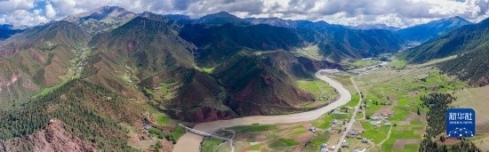6月22日在國道317線昌都段類烏齊縣附近拍攝的河谷景觀(無人機(jī)照片)。