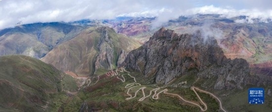 6月17日在國道317線昌都段丁青縣附近拍攝的鄉(xiāng)村公路景觀(無人機(jī)照片)。