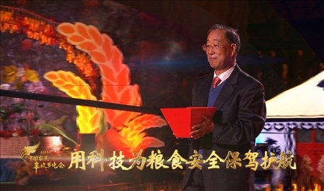 民以食為天,食以糧為先。2023年豐晚現(xiàn)場,沿著五條金穗鋪展的“豐收大道”,五位育種專家將手捧五斗種子,把自主創(chuàng)新培育的棉花、小麥、玉米、花生、水稻種子,鄭重交給自己的學(xué)生,并和一批農(nóng)科大學(xué)新生代表共同完成一場別有深意的“中國種子傳承儀式”。種子最終被播入“五色土”,不僅種下代代傳承、年年豐收的美好心愿,更承載著一代又一代科研工作者不斷求索與接力、守護(hù)糧食安全的責(zé)任和使命。