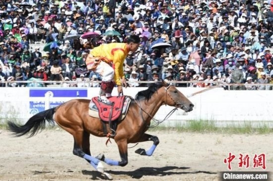 2023年8月,拉薩雪頓節(jié)馬術(shù)表演。 中新社記者 貢嘎來松 攝
