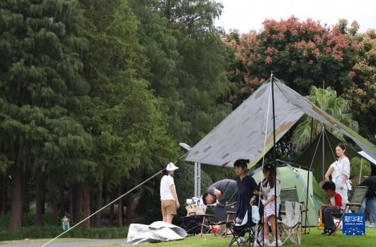 正值丹桂飄香的季節(jié),上海眾多市民游客選擇來到公園綠地或郊外林地搭起帳篷,與家人和朋友一起享受自然風光,放松身心。