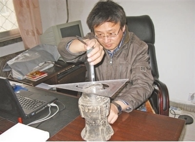 把文物故事講給更多人聽(講述·一輩子一件事) 劉世友在測量文物。劉世友(左)和同事在查閱資料。以......