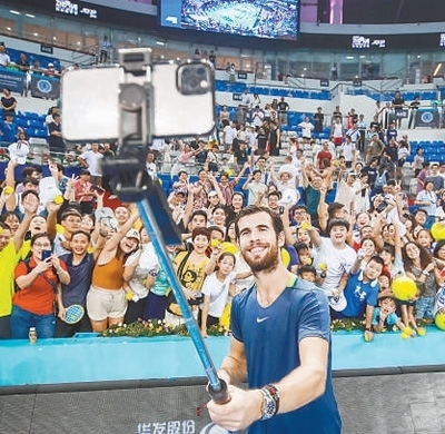 俄羅斯球員卡恰諾夫在2023年珠海網(wǎng)球冠軍賽中與球迷合影。珠海網(wǎng)球冠軍賽組委會(huì)供圖
