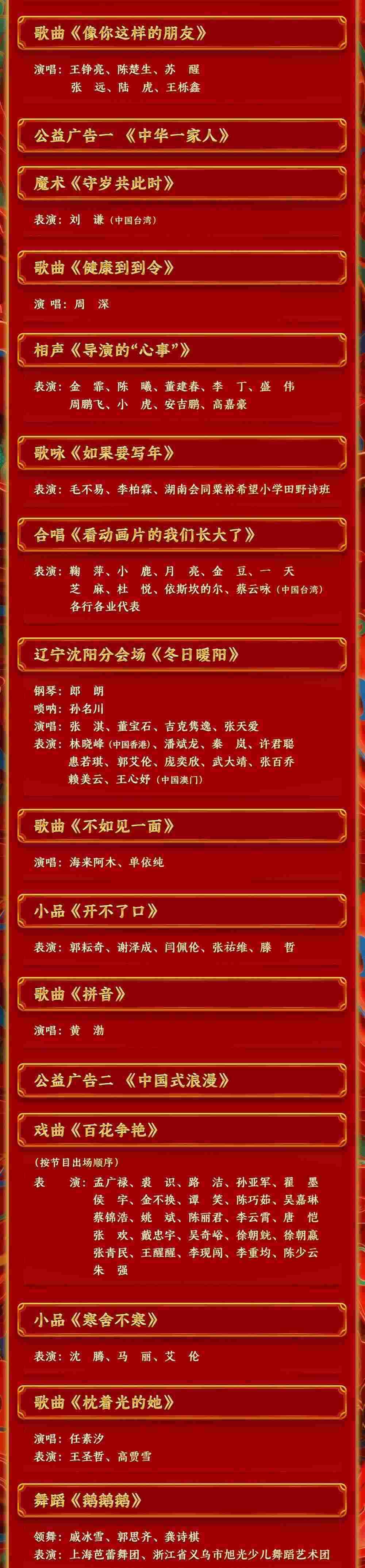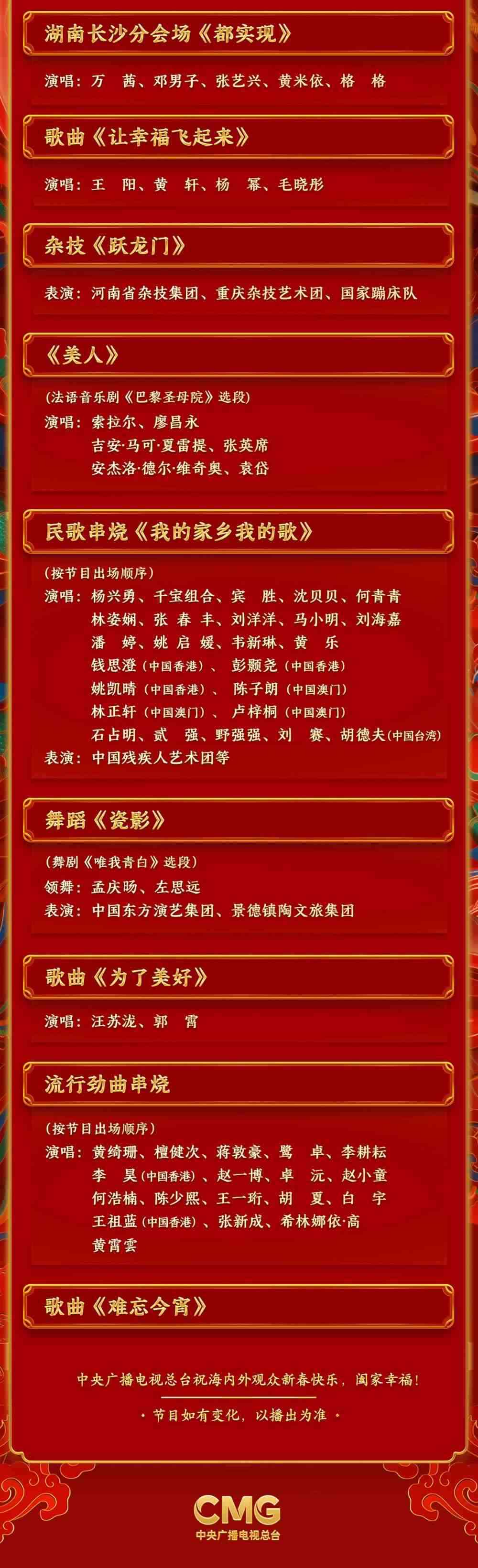 春滿(mǎn)中華,福到萬(wàn)家。中央廣播電視總臺(tái)《2024年春節(jié)聯(lián)歡晚會(huì)》節(jié)目單正式發(fā)布。