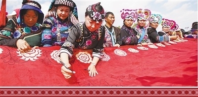在楚雄彝族自治州,像李如秀、李濟(jì)雁這樣的繡娘,多達(dá)5.7萬名。這背后,離不開一代又一代繡娘的努力和創(chuàng)新,更離不開當(dāng)?shù)攸h委政府的扶持。為了擴(kuò)大“賽裝節(jié)”影響力,推動彝繡的發(fā)展,楚雄彝族自治州州委、州政府出臺了一系列政策:培養(yǎng)繡娘,提高刺繡技能;組建協(xié)會,搭建發(fā)展平臺。彝繡產(chǎn)業(yè)逐漸成為推進(jìn)鄉(xiāng)村全面振興的重要產(chǎn)業(yè)。
