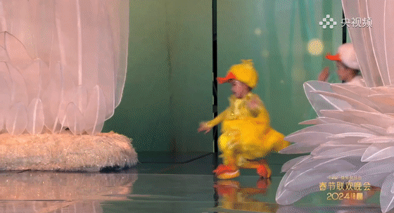 每年春晚都少不了兒童節(jié)目,導(dǎo)演組堅(jiān)持兒童舞蹈要從孩子的眼睛看世界,必須符合孩子身體的表達(dá)。這些“小天鵝們”正是來(lái)自駱賓王的家鄉(xiāng)義烏,他們用自己的理解展現(xiàn)了《詠鵝》中“白鵝戲水圖”的獨(dú)特韻味。“跪游”的經(jīng)典動(dòng)作把“紅掌撥清波”刻畫得惟妙惟肖,“翹屁股”更是萌翻了觀眾,左搖右擺的“矮子步”還是來(lái)自孩子們的鬼馬“創(chuàng)作”,整個(gè)舞蹈充滿了童趣純真。