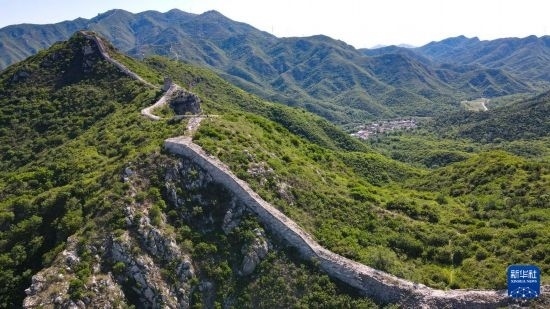 石峽關(guān)長城和長城腳下的石峽村(6月1日攝,無人機照片)。