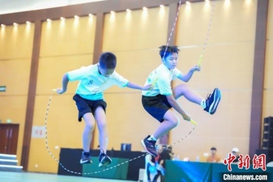 個(gè)人繩、車輪跳、交互繩……第十二屆海峽青年節(jié)·首屆海峽兩岸(福州)青少年跳繩錦標(biāo)賽13日在福州海峽青年交流營(yíng)地開賽。