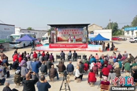 10月8日,重陽節(jié)到來前夕,河北衡水深州市高古莊鎮(zhèn)北梨園村舉行“九九重陽節(jié) 濃濃敬老情”主題活動(dòng),來自該村的102名70歲以上老人齊聚一堂,同吃“愛心宴”,喜迎重陽節(jié)?;顒?dòng)中,當(dāng)?shù)貫槔先藗儨?zhǔn)備了戲曲、鑼鼓等文藝節(jié)目,贈(zèng)送喜慶的紅圍脖、紅手套,現(xiàn)場對(duì)老人們義診,送上濃濃節(jié)日問候和美好祝福。圖為河北衡水深州市高古莊鎮(zhèn)北梨園村,老人們齊聚一堂,同吃“愛心宴”。 袁佳凱 攝