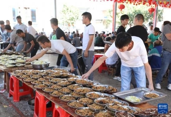 10月5日,在柳州市柳江區(qū)成團鎮(zhèn)甘塘村,人們在準備重陽節(jié)百家宴。