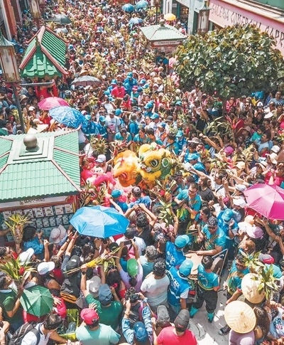 如今,舞龍舞獅已融入秘魯社會(huì)。每年中國(guó)春節(jié),醒獅團(tuán)都會(huì)在唐人街游行表演,喜慶的鑼鼓振奮人心,龍獅獻(xiàn)瑞帶來歡樂祥和。秘魯民眾走上街頭,手持他們稱為“中國(guó)竹子”的轉(zhuǎn)運(yùn)竹,簇?fù)碓邶埅{周圍,爭(zhēng)相看一看、摸一摸,希望沾上喜氣與幸運(yùn)——這已成為秘魯一大民俗。在秘魯人的婚禮上,舞獅已成為一種時(shí)尚。