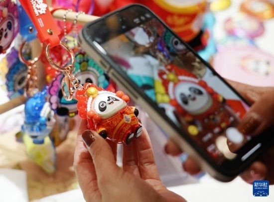 11月19日,參觀者在拍攝“蛇墩墩”系列新品。新華社記者 張晨霖 攝