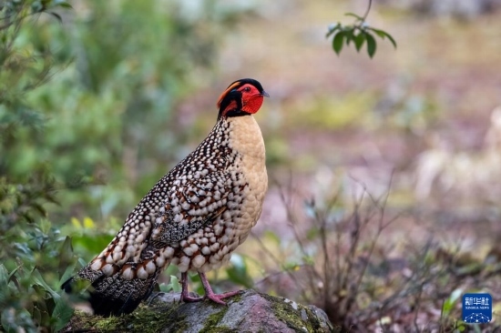 3月7日,福建省建甌市小橋鎮(zhèn),一只黃腹角雉在樹(shù)上停歇。
