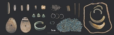 西藏康馬瑪不錯(cuò)遺址第二期出土的遺物(石質(zhì)、骨質(zhì)、金屬裝飾品,骨針、滑石珠、紅玉髓等)。