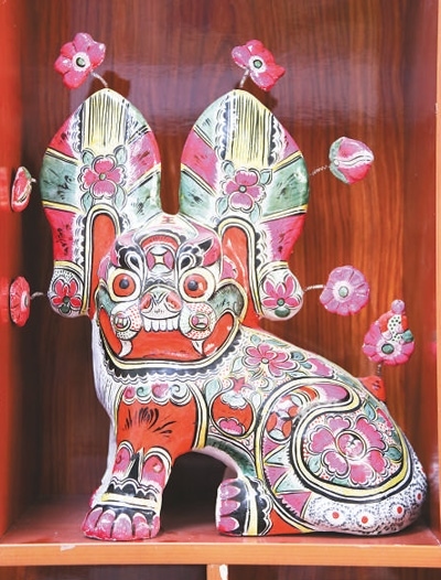 六營村“坐虎”彩繪泥塑。
