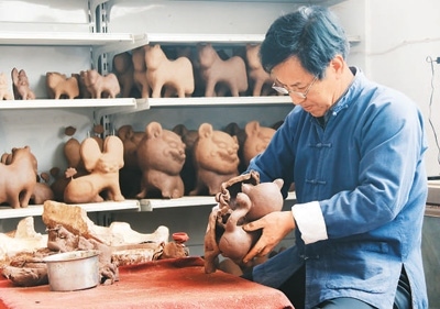 前些年,胡新明大膽嘗試,在泥里加入紙漿、棉花、面糊、糯米汁等,反復(fù)試驗,研制出“摔不爛”的泥塑;創(chuàng)新泥塑造型,讓各類產(chǎn)品推陳出新。