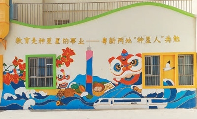清晨,太陽剛剛升起,新疆伽師縣西克爾庫勒鎮(zhèn)中心幼兒園內(nèi),一群背著畫板、提著顏料箱的年輕人已開始忙碌。剛翻新的幼兒園墻面成為他們的畫布,大海與雪山、醒獅與烤馕、廣州塔與喀什高臺(tái)民居等粵新兩地文化元素在此相遇。百人共繪的畫卷(局部見圖),不僅點(diǎn)亮邊疆孩子們的藝術(shù)星空,也滋潤(rùn)著共創(chuàng)者的心靈。
