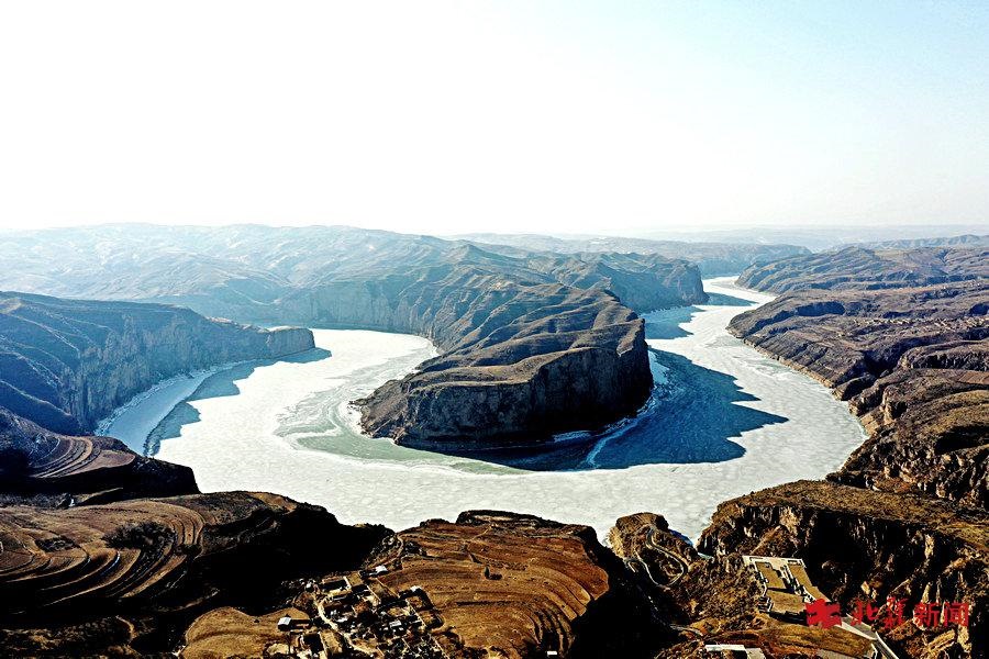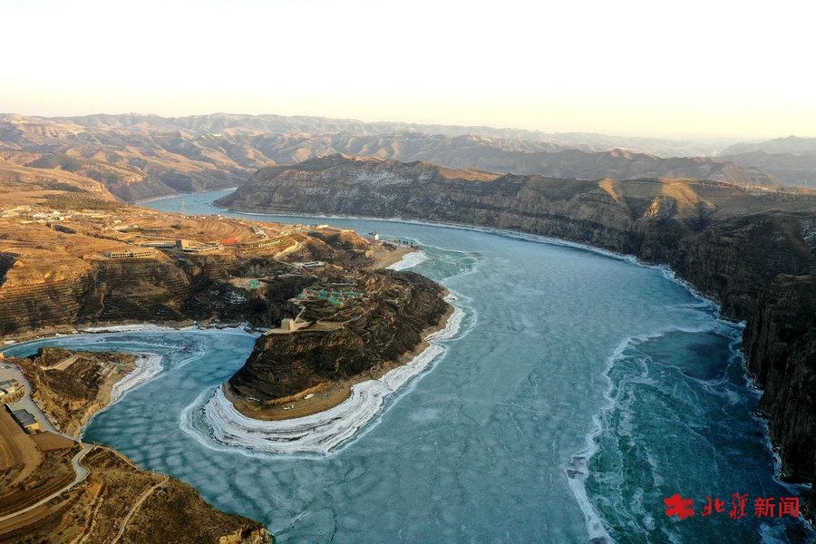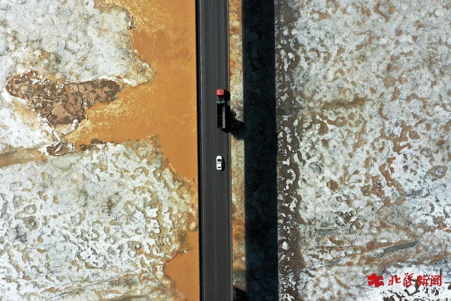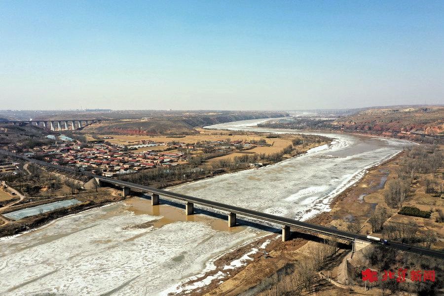 黃河呼和浩特段即將開河 俯瞰冰面碧綠如玉相當(dāng)壯觀