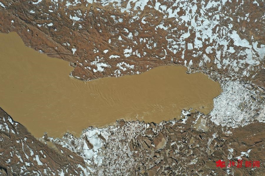 3月14日,黃河呼和浩特段部分河段已出現(xiàn)開河跡象,汩汩水流在冰面上流淌。而在太極灣和老牛灣段,黃河冰面碧綠如玉,空中俯瞰相當(dāng)壯觀。