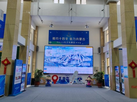 滑雪場接待大廳中的氣象信息大屏。新華社記者 張武岳 攝