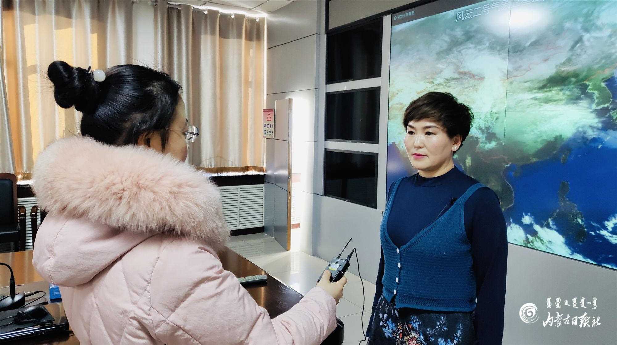 達茂旗氣象局局長敖登其木格接受采訪。