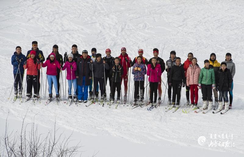 劉東雨帶領下的牙克石市第一中學滑雪隊。