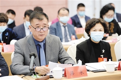 1月26日下午,呼和浩特市代表團審議政府工作報告時,阿拉坦倉代表就推進國家通用語言文字推廣使用工作提出建議。記者 袁永紅 攝