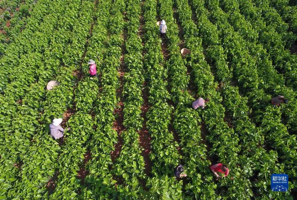 云南尋甸縣金所街道草海子村的農(nóng)婦在采摘蠶桑葉(2020年5月16日攝,無人機照片)。當?shù)卮罅Πl(fā)展蠶桑等特色種養(yǎng)殖和加工產(chǎn)業(yè),帶動農(nóng)民脫貧增收致富。新華社記者 楊宗友 攝
