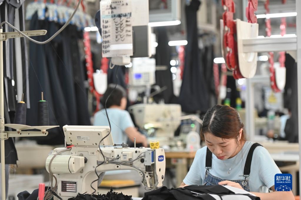 在位于福建省泉州市經(jīng)濟技術(shù)開發(fā)區(qū)的九牧王西褲智能化生產(chǎn)車間,工人在自動化西褲吊掛流水線上作業(yè)(2021年7月30日攝)。近年來,泉州市稅務(wù)部門積極落實減稅降費,出臺一系列穩(wěn)定工業(yè)、扶持外貿(mào)、鼓勵企業(yè)研發(fā)創(chuàng)新的政策,服務(wù)實體經(jīng)濟發(fā)展。新華社記者 宋為偉 攝