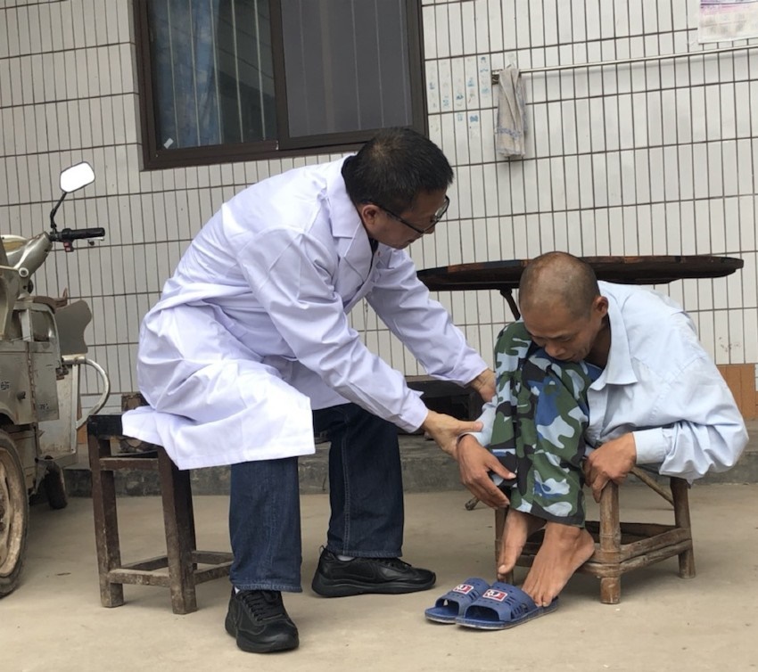 梁益建在病患家中對其進行康復狀況監(jiān)測。成都市第三人民醫(yī)院供圖