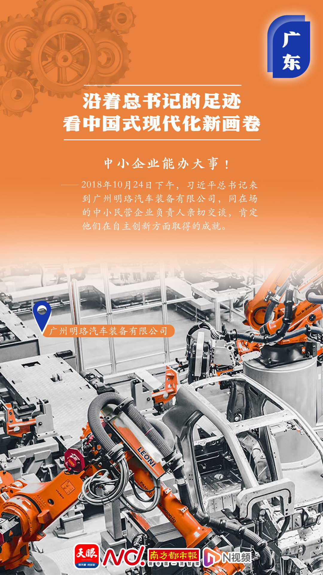 “中小企業(yè)能辦大事!”2018年10月24日下午,習(xí)近平總書(shū)記來(lái)到廣州明珞汽車裝備有限公司,同在場(chǎng)的中小民營(yíng)企業(yè)負(fù)責(zé)人親切交談,肯定他們?cè)谧灾鲃?chuàng)新方面取得的成就。