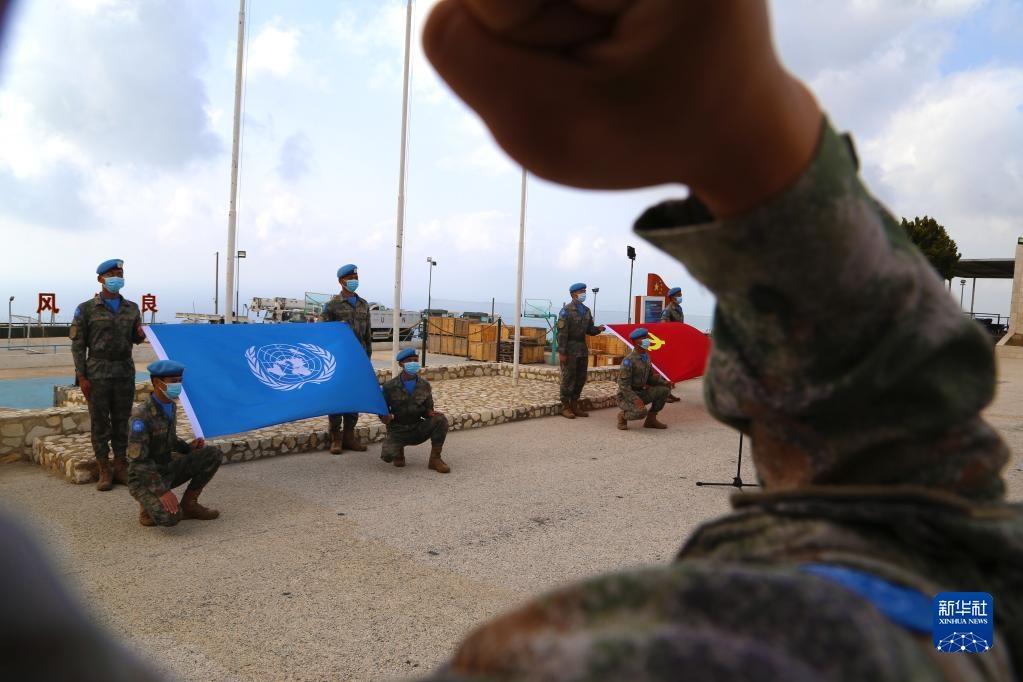 “我宣誓:忠于黨,忠于社會(huì)主義,忠于祖國,忠于人民……揚(yáng)藍(lán)盔精神,展大國形象,為祖國爭(zhēng)光,為軍旗添彩。”中國共產(chǎn)主義青年團(tuán)成立100周年之際,在黎巴嫩南部提爾市沙馬村的中國維和營區(qū),中國第20批赴黎巴嫩維和建筑工兵分隊(duì)的官兵們頭戴貝雷帽,身穿配有五星紅旗臂章的星空迷彩服,擺成數(shù)字“100”的隊(duì)形,面向國旗和聯(lián)合國旗莊嚴(yán)宣誓。
