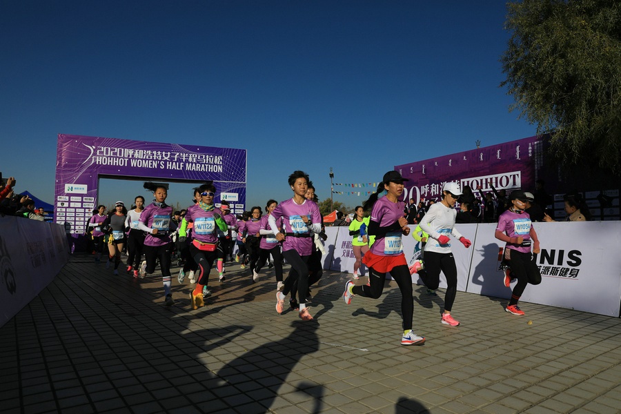 10月17日上午,2020呼和浩特女子半程馬拉松賽在蒙古風情園鳴笛開跑。